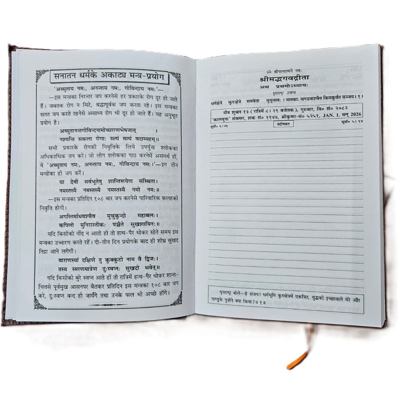 Although many editions of Gita have been published for Gita text. But this edition of Gita-Dainandini (Gita Daily Dairy) is published every day with the main aim of practicing Gita and compiling our traditional thoughts on it. Apart from this, it is extremely useful for everyone due to being equipped with many useful articles such as welfare articles, abridged panchang, fasting festival, etc.